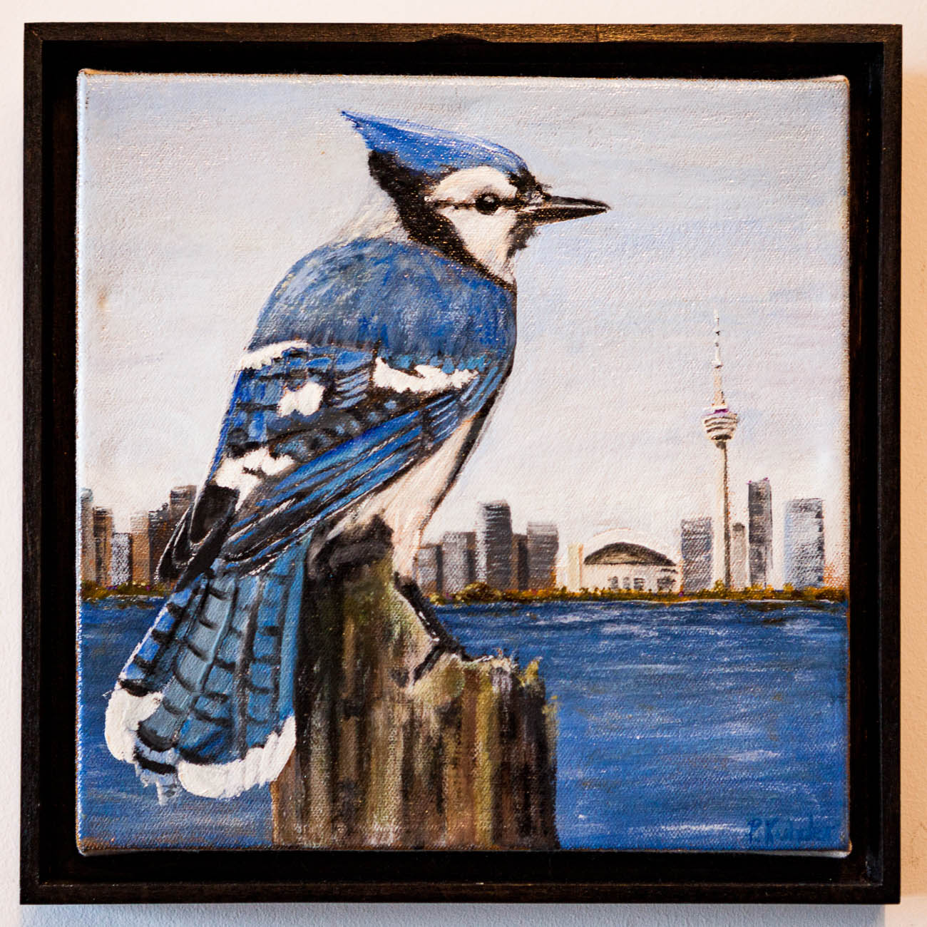 Obviously inspired by Toronto’s famous MLB Baseball Team I painted a trio of Blue Jays. The Frames are hand made and for extra style points stained in the same espresso stain as the stretcher bars, making the paintings a looker even from the back.